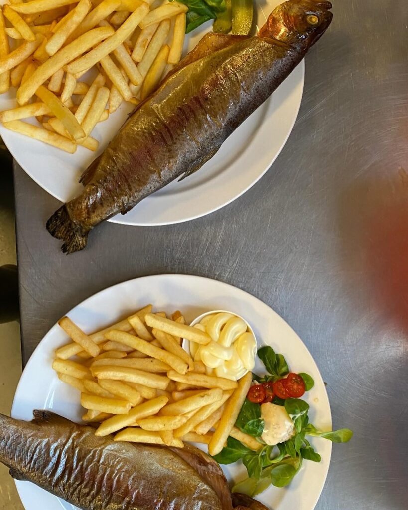 Zin in een hapje of drankje na het vissen? In ons restaurant aan het water geniet je van lunch, snacks of een uitgebreid menu met vis en vlees. Probeer zeker eens onze vers gerookte forel! Voor groepen verzorgen we ook arrangementen, inclusief eten en drinken.